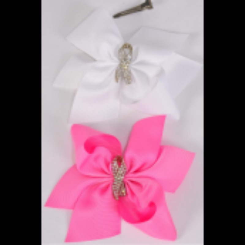 Children Jumbo Pink White Hair Bow 1Doz