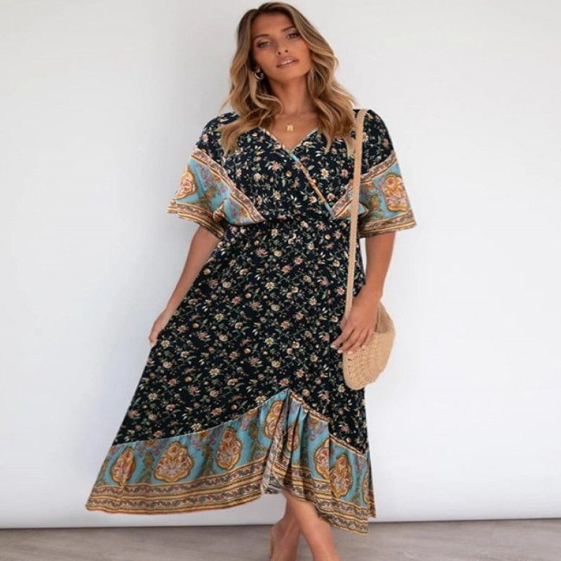 Elegant Short Sleeve Floral Dress